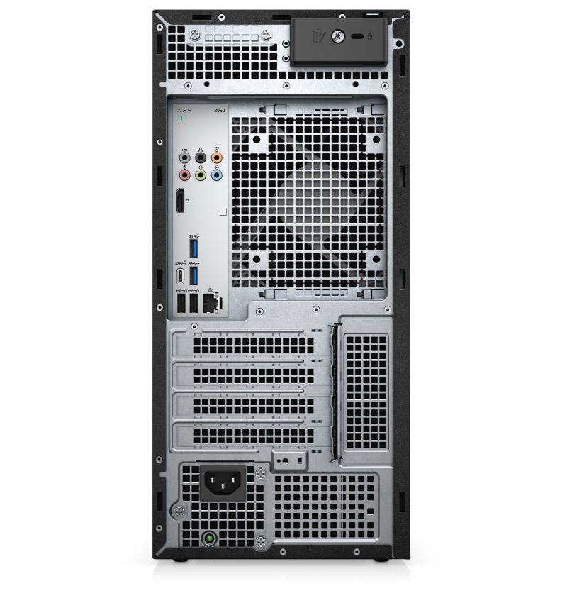 Kensington lock | 7.1 audio 6-connector stack of re-taskable audio ports | DisplayPort 1.4 (UMA only)* | USB 3.2 Type-A Gen 1 (x2) | USB 3.2 Type-C™ Gen 2x2 | USB 2.0 Type-A (x2) | Gigabit Ethernet